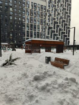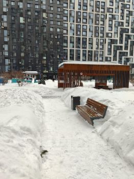 Двор без машин, закрытая территория с детской и спортивной площадками и дорожками для прогулок и пробежек.