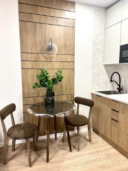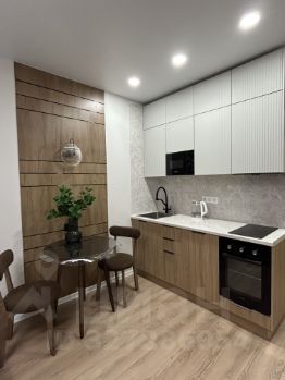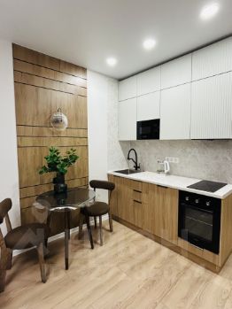 Кухня оборудована современной техникой: встроенный не шумный холодильник, индукционная плита, встроенная микроволновая печь, духовой шкаф, фильтр воды Барьер и посудомоечная машина. Инверторный кондиционер.