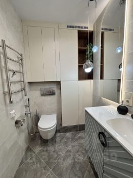Предлагаем Вашему вниманию шикарную трехкомнатную квартиру. После ремонта, все новое. Грамотно спланировано пространство ( гостиная с большим комфортным двуспальным диваном, встроенный кухонный гарнитур со встроенной техникой ( посудомоечная машинка, духовой шкаф с функцией гриль, св печь, варочная панель, вытяжка, холодильник). Просторная спальня с вместительным встроенным шкафом, выход на лоджию ( окна во двор). Вместительная гардеробная комната. Детская- кабинет, с двуспальным диваном, обустроено рабочее место, выход на застекленную лоджию. В коридоре много встроенных шкафов. В ванной комнате все пространство продумано до мелочей, глубокие шкафы под химию. Вся необходимая бытовая техника и приборы ( электро чайник, кофемашина, утюг, пылесос, гладильная доска, сушка для белья)