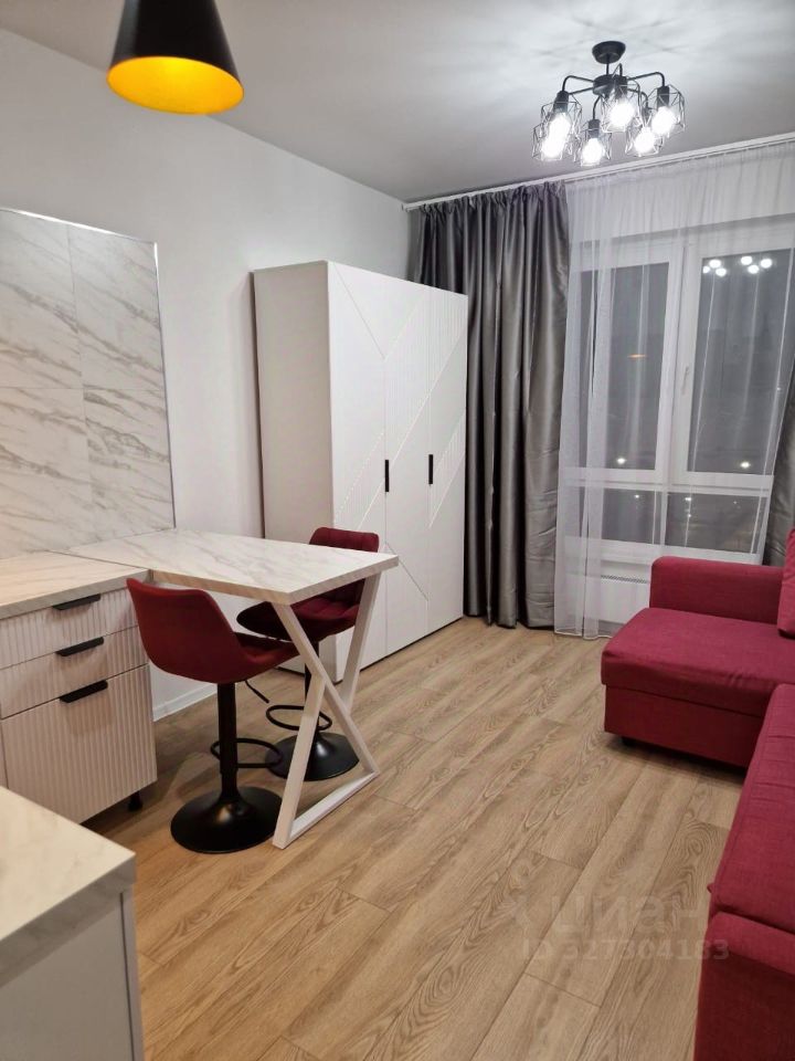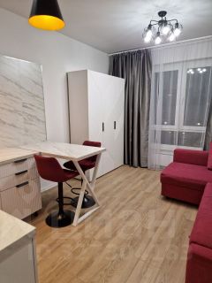 В квартире сделан евроремонт, поэтому все выглядит современно и стильно. Пространство студии оборудовано необходимой мебелью, что позволяет сразу заехать и жить с комфортом. В наличии вся необходимая техника: холодильник и стиральная машина.