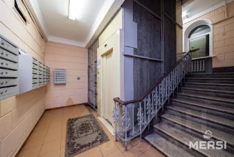 Сталинский фасадный дом. Просторный, чистый подъезд после ремонта. Охраняемая территория (имеется пункт охраны). Видеонаблюдение. Въезд через шлагбаум. ПАРКОВКА во дворе - места всегда есть.