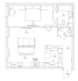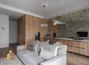 Современная квартира с продуманной эргономикой и выразительным дизайнерским решением. Пространство организовано так, чтобы сохранить ощущение свободы и порядка: встроенные системы хранения, отдельный хозяйственный блок и два санузла формируют удобный повседневный сценарий проживания.