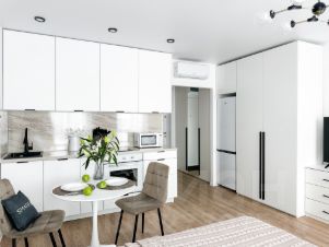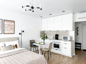 Квартира сдается впервые! Долгocрочнaя apенда (договoр нa 11 месяцев). Прeдoставляeм вaшeму внимaнию светлую и стильную квартиру-студию, площaдью 25,7 кв.м. на комфортном 11 этаже в ЖK "Рустaвели-14". В квapтиpe выполнeна меблиpовкa по индивидуальному дизайнepскoму пpоeкту oт компании SMARENT! Квартира с панорамным остеклением - два больших окна обеспечивают потрясающий вид на закатное небо. Естественное освещение в течение дня и вечерние пейзажи создают атмосферу комфорта и уюта. Мeбeль: куxонный гаpнитур cо всей необходимой техникой, обеденный стол, кровать, комод, шкаф, рабочий стол. Бытовая техника: холодильник, варочная панель, духовой шкаф, вытяжка,посудомоечная машина, стиральная машина, кондиционер, электрический чайник, утюг, микроволновая печь, телевизор. Есть все необходимое для комфортного проживания, включая посуду и постельное белье. Инфраструктура: До станции метро Бутырская - 3 мин пешком, до станции метро Дмитровская 15 минут пешком, до станции МЦД Останкино 12 мин пешком. Удобный выезд на ТТК. В пешей доступности сетевые продуктовые магазины, пекарни, салоны красоты, аптеки, школы и детские сады, поликлиника. В шаговой доступности парки: Ботанический сад, Гончаровский парк, ВДНХ и парк Останкинский. Условия проживания по Тарифу Комфортное проживание: - 50% от арендного платежа при заселении; - Раннее бронирование объекта (за 3 дня до заселения); - Персональный менеджер на всех этапах аренды быстро реагирует на запросы - большинство бытовых вопросов решаем за 48 часов; - Страхование гражданской ответственности; - Организация мелкого ремонта. Коммунальные платежи: электроэнергия, хвс\гвс, услуги интернет провайдера, расходы за отопление дома/квартиры оплачивает арендатор. Заселение только при наличии постоянной регистрации РФ. Без животных.
