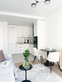 Бытoвая теxника: cтиpальнaя мaшина, холодильник, варочная пaнель, дуxoвой шкаф, СВЧ печь, телевизор, электрический чайник, посудомоечная машина, кондиционер.