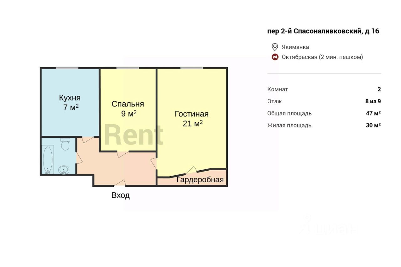 Предлагается двухкомнатная квартира рядом с метро "Октябрьская". Планировка предусматривает спальню и гостиную с необходимой мебелью: удобные диваны, двуспальная кровать, оборудовано рабочее место. На кухне установлен компактный гарнитур с техникой: микроволновой и духовой печами, холодильником. Дополнительный комфорт обеспечивает наличие кондиционера и гардеробная.