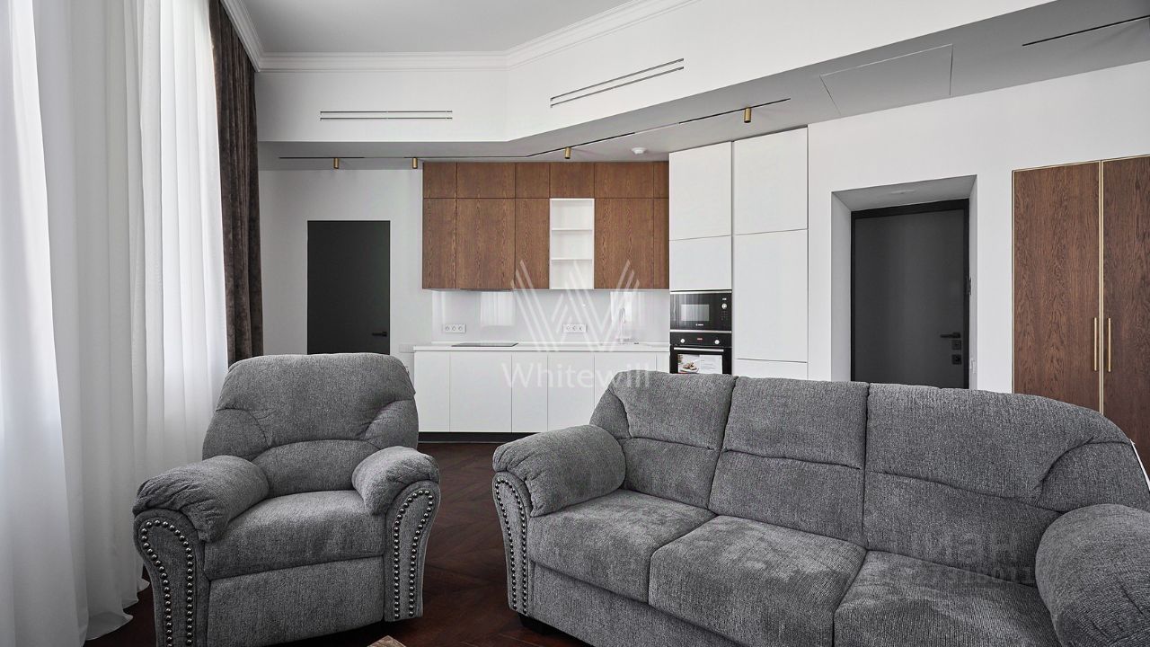 Самая редкая планировка в доме. Спланирована угловая гостиная с 4-мя окнами, спальня с ванной комнатой, вторая спальня, ванная комната, встроенный гардероб. Спальни разделены гостиной. Апартамент полностью укомплектован современной мебелью, установлена встроенная кухня с премиальной техникой. В каждой комнате кондиционирование системой фанкойл.