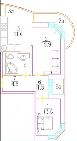 Планировка: Большая кухня-гостиная, спальня, большой санузел, три лоджии.