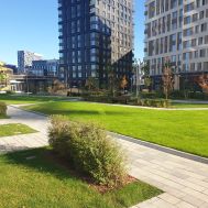 Здесь есть все, что нужно для kомфортной жизни. На первых этажах жилых домов кафе, салоны красоты, фитнес-клуб. Здесь же своя школа, детские сады, спортивный клуб и стадион.