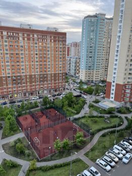 Дом панельного типа, построен в 2016 году. На территории двора предусмотрена открытая парковка. В подъезде есть пассажирский и грузовой лифты. Вид из окна во двор.