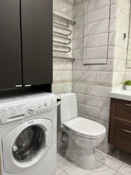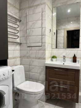 Ванная комната оснащена современной сантехникой, ванной, стиральной машиной.