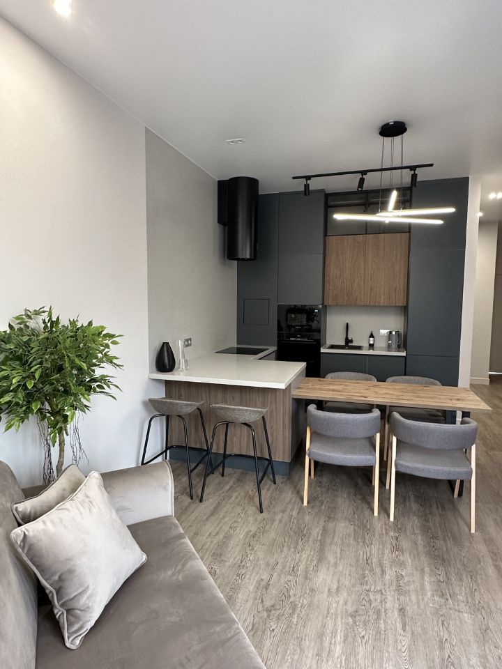 Светлая, уютная, квартира с двумя изолированными комнатами и просторной кухней-гостиной 20 кв. м! Отличная планировка, окна выходят в тихий двор и на пешеходный проспект. В квартире выполнен качественный дизайнерский ремонт, полностью укомплектована необходимой мебелью и техникой, 2 гардеробных комнаты.