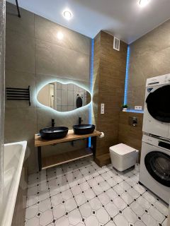 Сдается впервые стильная, современная, медийная 85 кв.м. трёхкомнатная квартира премиум класса с дизайнерским ремонтом, домашним кинотеатром, объёмным звуком, круговой шумоизоляцией в спальнях и зоной релакса. Квартира оборудована двумя полноценными органичными сан. узлами (один с душевой, другой с увеличенной ванной, подсветками, широкоформатной плиткой, тропическим душем), массажным креслом, двумя гардеробными, 3 шкафами в коридоре, большой рабочей зоной в детской и отдельной рабочей зоной для взрослых в спальне, просторной кухней-гостиной с огромной п-образной кухней, большим двухдверным холодильником и функциональной барной стойкой и стульями. Квартира создана в первую очередь для удобства жизни, релакса, комфортного времяпрепровождения и наслаждения. Эта та самая квартира, в которую хочется возвращаться и не хочется из нее уходить, тк в ней предусмотрено все, что нужно для комфортной жизни удобно, эстетично, функционально и красиво. Каждая комната уникальна и со своей неповторимой изюминкой. В каждой комнате есть кондиционер и телевизор. В спальне большая кровать размера king-size, зона отдыха и релакса: можно расслабиться в массажном кресле и посмотреть любимую передачу, а можно полюбоваться закатом или расслабиться полностью и послушать с закрытыми глазами медитацию или Вашу любимую музыку. В светлой детской комнате можно, как удобно разместить всю необходимую технику и заниматься наукой, так и заниматься физической нагрузкой: йогой или танцами. Детская оборудована двумя спальными местами. В излюбленной всеми кухне-гостиной можно вспомнить места где уже побывали или помечтать и запланировать новые путешествия, а также можно удобно разместить сидя 12 человек, а при необходимости и больше. Пространство позволяет организовать как спокойный семейный ужин, так и веселую активную вечеринку. Места хватит всем!) В гостиной установлен проектор и музыкальные колонки с продуманным звуком и освещением. Удобные увеличенные, поддерживающие стулья и высокий ортопедический диван фирмы Сокруз добавят комфорта Вашему отдыху, а домашние помощники в виде посудомоечной, стиральной и сушильной машин, моющего робота-пылесоса освободят Ваше драгоценнейшее время. Функциональные гардеробные в каждой спальне уместят все Ваши вещи: от костюмов, до колес внедорожника)) Мощные стеллажи выдержат все! А зеркала в полный рост создадут дополнительный комфорт при примерке одежды. За дополнительную плату предоставляется машиноместо в теплом подземном паркинге, в которое можно спуститься на лифте, не выходя на улицу, что создает дополнительный комфорт для Вас в любую погоду, тк Вам не надо будет искать где запарковаться и как дойти до подьезда по непогоде. Теплое сухое машиноместо всегда будет ждать Вас, а Ваше авто всегда Вас будет встречать теплым салоном внутри и чистым сухим видом снаружи. Коммунальные платежи выключены. Без комиссии, от собственника.