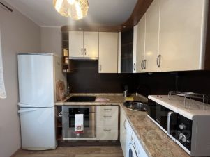 В квартире сделан качественный ремонт, что создает приятную атмосферу для жизни. Есть вся необходимая мебель — как в комнате, так и на кухне. В распоряжении жильцов холодильник, варочная поверхность,духовой шкаф, электрический чайник, пылесос, телевизор и стиральная машина. Санузел совмещенный, оборудован ванной.