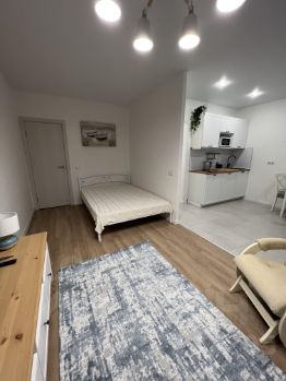 Собственник, сдаю одному гостю на длительный срок (от 11 месяцев) уютную квартиру на 19 этаже с мебелью (ширина кровати 1,4 м) и бытовой техникой (есть кондиционер).