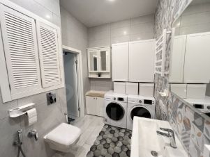 В квартире есть все необходимое для комфортного проживания с современной мебелью и техникой : в комнате кровать 180х200 с подъемным механизмом с отсеком для хранения вещей, на кухне диван раздвижной, кондиционер, холодильник, телевизор, посудомоечная, стиральная и сушильная машины. Просторная кухня площадью 12.5 кв. м позволяет удобно готовить и принимать гостей. А также имеется просторная гардеробная!
