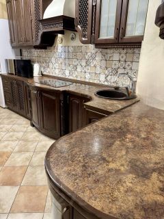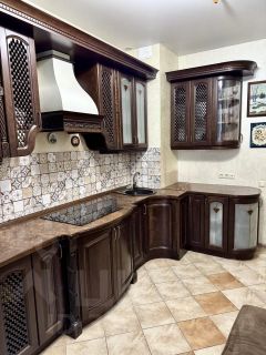 Встроенный кухонный гарнитур, мебель современная. стир, холодильник.