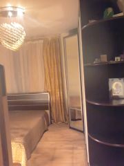В комнатах - качественная мебель. В спальне - удобная двуспальная кровать и объемный шкаф. В детской - удобный светлый диван, раскладной стол, стулья, доска.