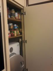 Много дополнительных мест для хранения - светлый встроенный шкаф в прихожей, встроенный книжный шкаф, "темная комната" (стиральная машина "Самсунг", полки для "заготовок").