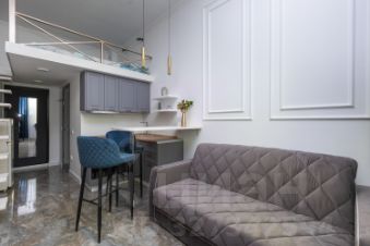 Апартамент выполнен в светлых, приятных тонах в стиле ART-loft.