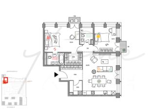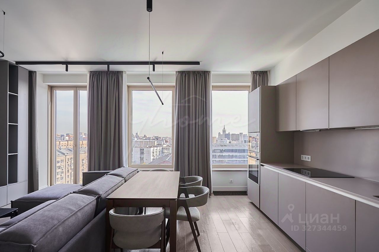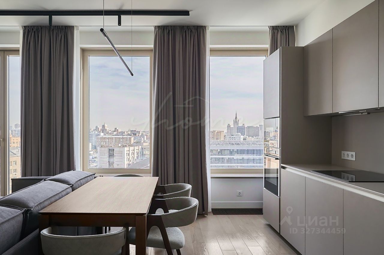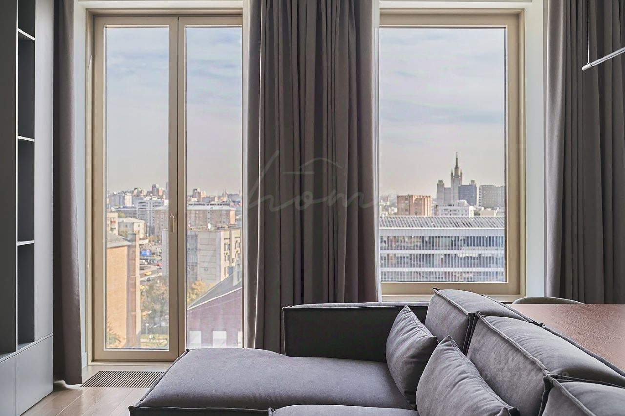 Просторная кухня-гостиная, мастер-спальня с собственным санузлом и гардеробной, спальня, постирочная, гостевой санузел, гардеробная при входе, холл. Благодаря панорамным окнам пространство наполнено естественным светом воздухом, открываются потрясающие виды в сторону Высотки на Кудринской.