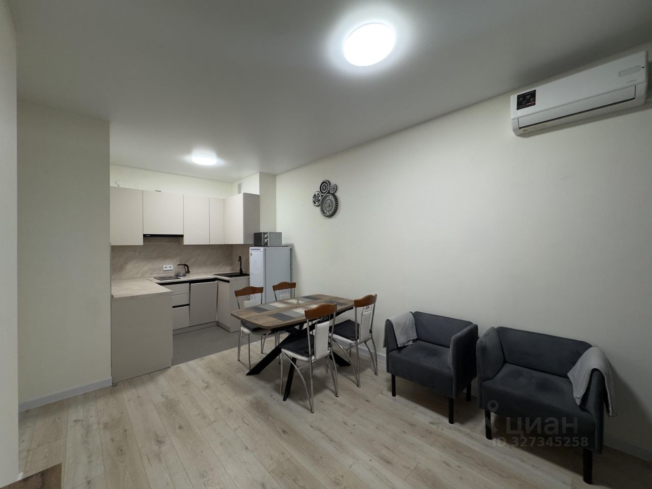 В квартире есть всё необходимое для комфортного проживания: кондиционер, холодильник, посудомоечная машина, телевизор и стиральная машина. На кухне и в комнате установлена современная мебель.