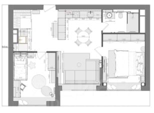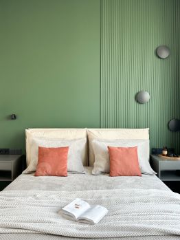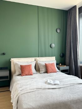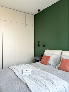 - две изолированные комнаты спальня и детская (кровати с подъемным механизмом, шкафы, рабочая зона, тумбы, постельные принадлежности);