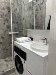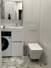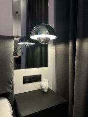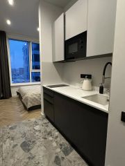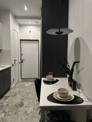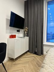 Современные апартаменты-студия с дизайнерским интерьером в спокойных натуральных оттенках. Панорамные окна наполняют пространство светом, а продуманные детали добавляют уюта. Большая кровать, функциональная кухня и удобный гардероб делают проживание максимально комфортным.