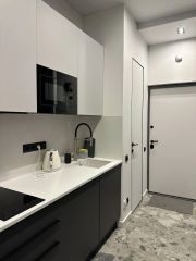 - кухня с варочной панелью, микроволновкой и холодильником;