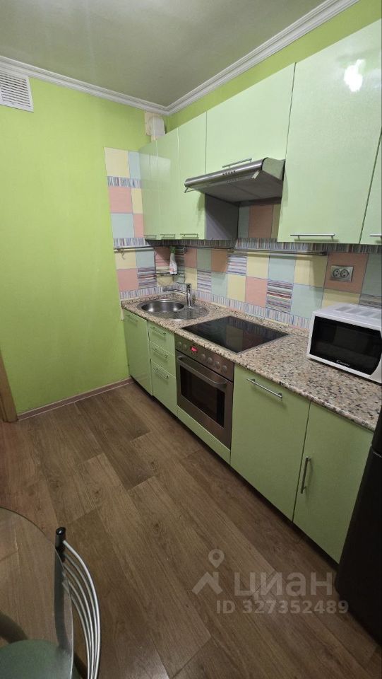 Жилая комната - 16 кв.м., удобный диван (двухместный), мебель (платеной шкаф, стилаж, тумба под ТV). Кухня - 7 кв.м., кухонный гарнитур, встроенная плита и духовой шкаф, большой холодильник, микроволновка. Есть Wi-Fi.