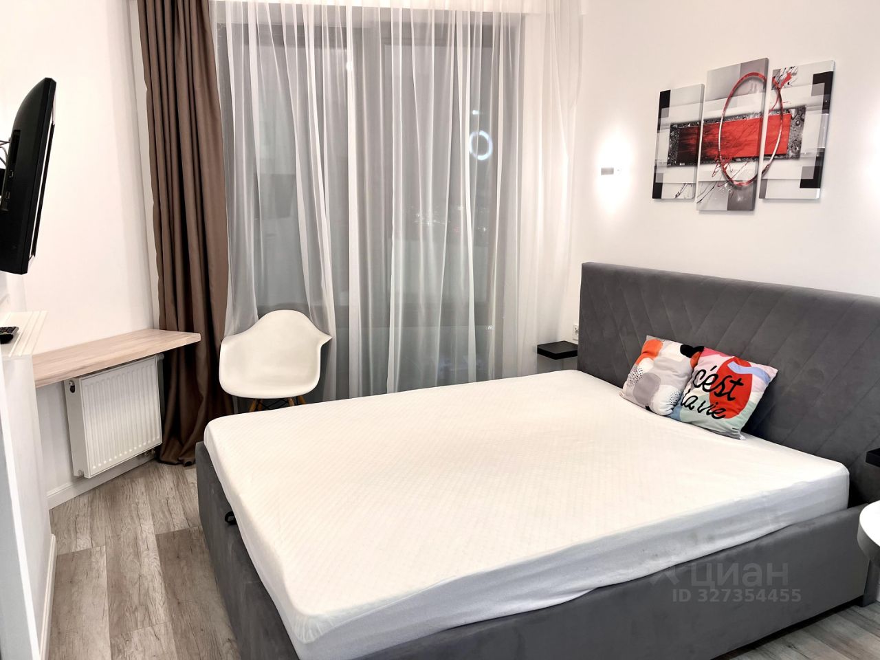 Удобная двуспальная кровать, шкаф-купе, смарт-тв, стиральная машина, сушилка для белья, всё что нужно для вашего комфорта.