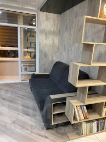 Комнаты изолированные, что создает комфортное пространство для проживания. Просторная кухня площадью 6 м² оснащена всем необходимым: холодильник, плита, микроволновая печь и стиральная машина. В гостиной установлен телевизор и кондиционер, а также удобные шкафы для хранения вещей.