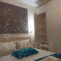 В спальной комнате двуспальная кровать с ортопедическим матрасом и с подъёмные механизмом, местом для хранения вещей. Имеется большой встроенный шкаф.