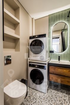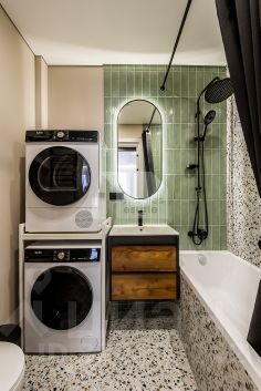 Апартаменты укомплектованы всей необходимой мебелью и техникой. Стиральная и сушильная машина (отдельно стоящая, без комбо вариантов), посудомоечная машина, кондиционер, встроенный холодильник, духовой шкаф с свч, два ТВ и т. д.