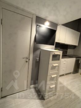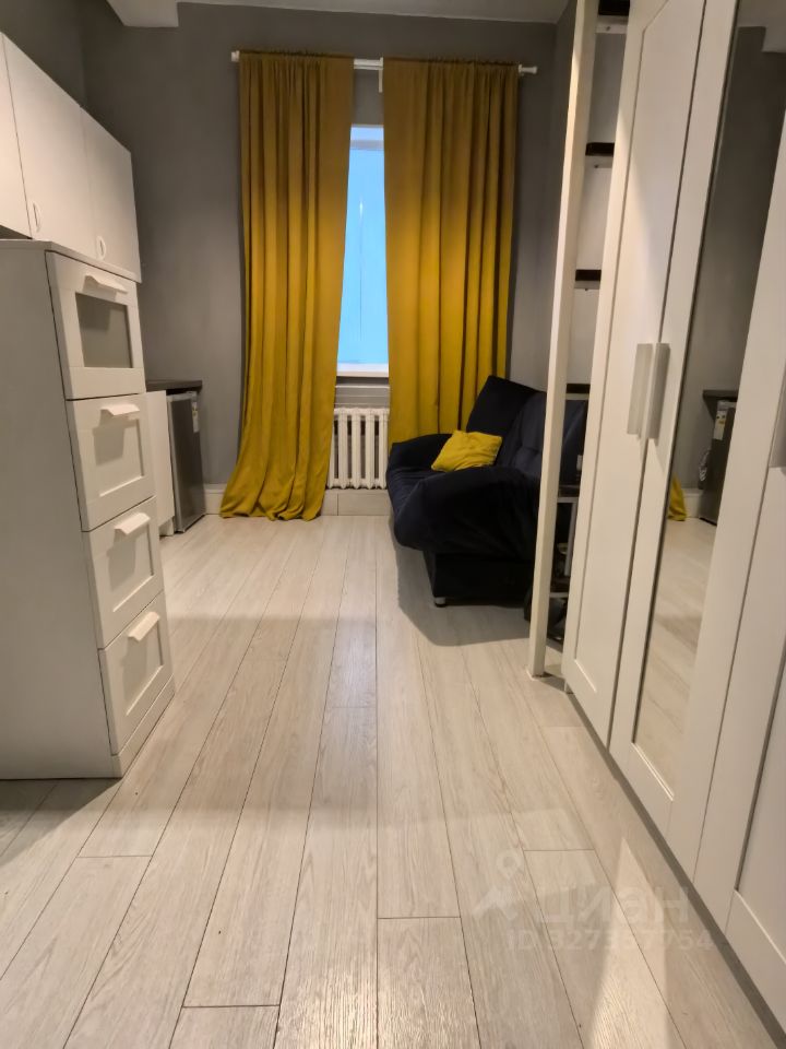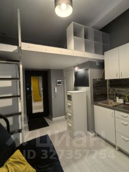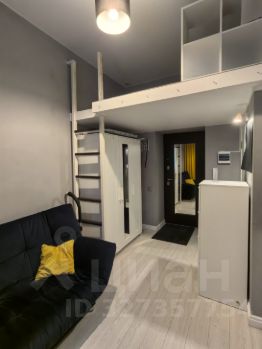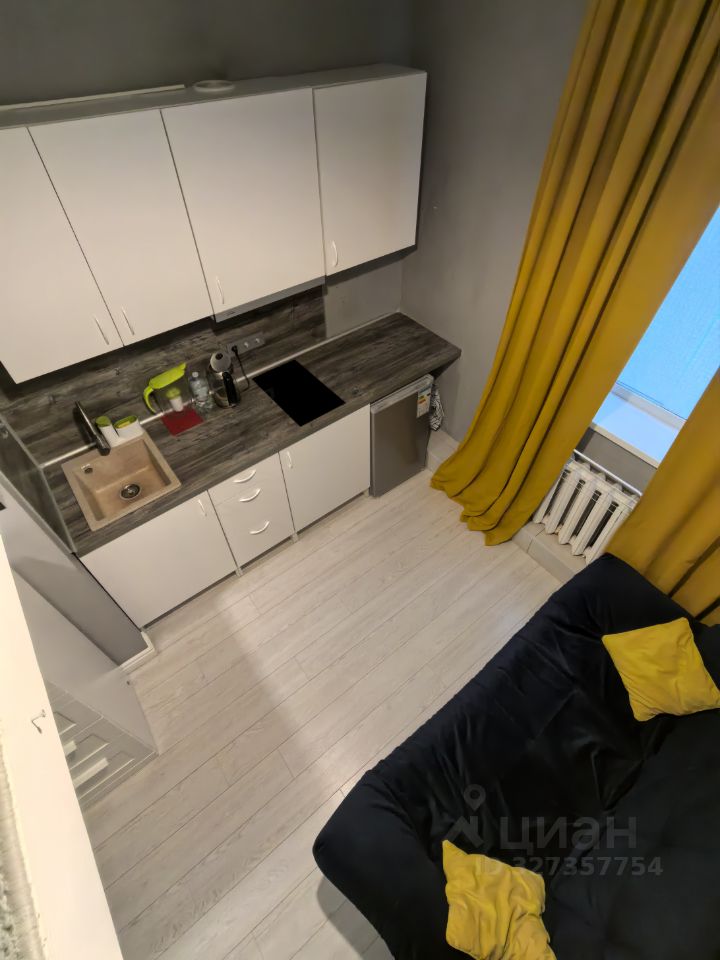 Два уровня. На первом уровне площадью 13 кв.м, расположены полноценный диван, на котором можно спать, трехстворчатый шкаф, комод, кухонная мебель, небольшой холодильник.