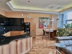 (1 комната свободного назначения, частично меблирована), встроенная кухня, раскладной вместительный диван, гардеробная, кабинет, 2 санузла (ванна и душ), встроенные шкафы, много мест для хранения. Максимальный комфорт для приема гостей. На этаже всего 3 квартиры, что обеспечивает абсолютную камерность. Статус и приватность обоснованы близостью к Кутузовскому проспекту и Деловому центру, что по определению является местом обитания бизнес- и политической элиты. Закрытая придомовая территория. Консьерж-служба обеспечивает многоуровневую систему безопасности 24/7.