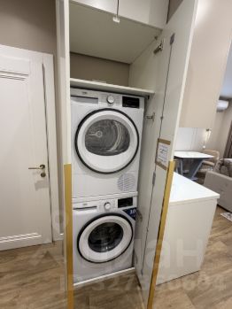 Стиральная и сушильная машина встроены в шкаф. В ванной комнате душевая кабина, полы с подогревом, электрический полотенцесушитель, гигиенический душ.