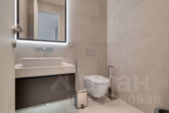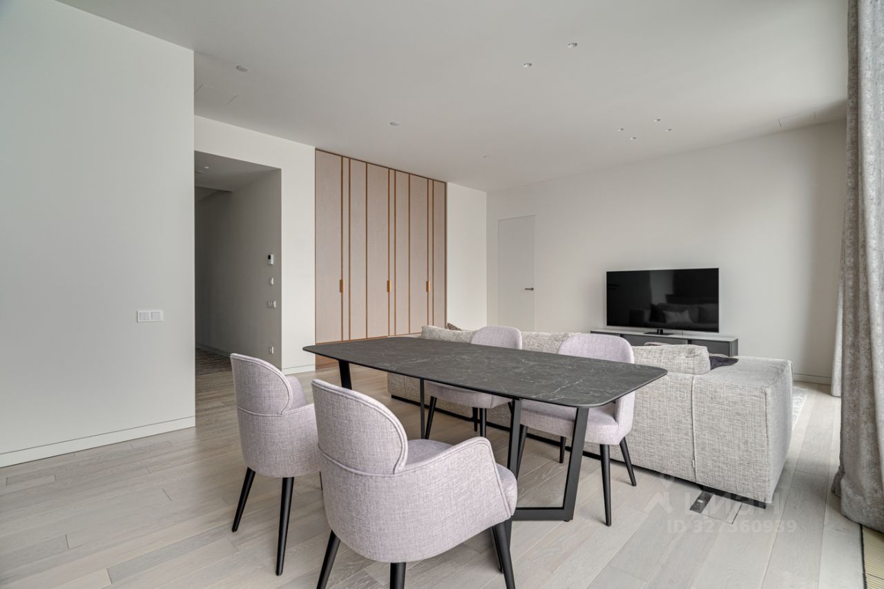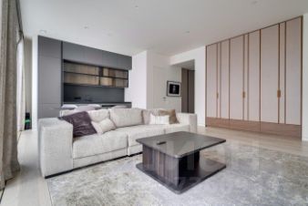 В квартире есть всё необходимое для комфортного проживания. Дизайнерский ремонт создаёт уютную и стильную атмосферу. В кухне и комнатах установлена современная мебель. Из техники — кондиционер, холодильник, посудомоечная машина, телевизор и стиральная машина. Санузла два, оба совмещённые, один из них оборудован душевой кабиной.