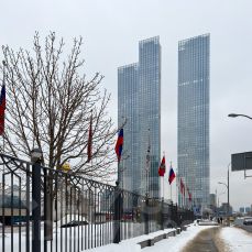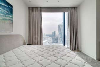 Сдаётся в аренду видовая двухкомнатная квартира с дизайнерским ремонтом в ЖК премиум класса Capital Towers. Общая площадь квартиры составляет 73 кв. м, жилая площадь — 50 кв. м, а кухня — 10 кв. м. Высота потолков — 3 метра. Квартира расположена на 31 этаже 67-этажного современного здания. Окна выходят на улицу, что обеспечивает хорошую освещённость и панорамные виды.