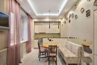 Две изолированные спальни, одна с гардеробной, балкон, совмещенная кухня-гостиная и санузел. Укомплектована всей необходимой мебелью и техникой. Окна спальни выходят в тихий двор, остальные на улицу.