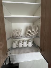 Имеются: встроенный холодильник (no frost), посудомоечная машина, вытяжка, духовой шкаф, индукционная плита, фильтр для воды, электрический чайник.