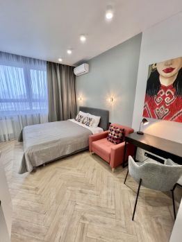 Удобная транспортная доступность, тихий двор без машин с продуманным зонированием, в окружении парков. Концепция "всё самое важное рядом" Стильная, светлая, тихая, продуманная до мелочей квартира-студия.