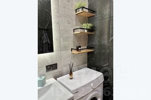 Ванная: Современная душевая кабина, стиральная машина.