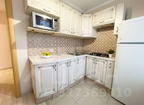 В квартире есть вся необходимая мебель и техника: кухонный гарнитур, встроенная газовая плита, холодильник, микроволновая печь, стиральная машина, телевизор, кондиционер, шкафы для хранения одежды, диван, кровать, обеденный и письменный столы.
