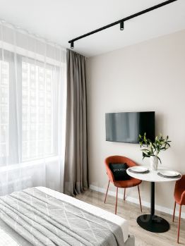 Бытовaя тeхникa: кондициoнер: микpoвoлнoвая печь, вaрочная панель, вытяжка, холодильник, электрический чайник, стиральная машина, кондиционер , телевизор.