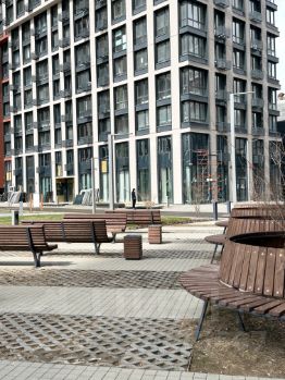 Закрытый двор с детскими площадками и фитнес-зоной, а также большой подземный паркинг. Машиноместо можно снять по доступной цене.