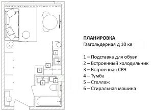 Бытовая техника: стиральная машина, холодильник, варочная панель, СВЧ печь, телевизор, электрический чайник. Есть всё необходимое для жизни