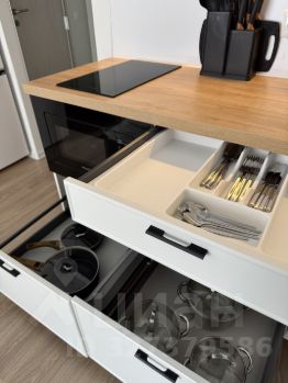 Бытовая техника: стиральная машина с функцией сушки, холодильник, варочная панель, телевизор smart, электрический чайник, кондиционер, утюг, микроволновая печь, вытяжка
