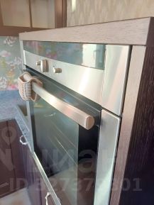 Кухонный гарнитур под единой каменной столешницей, встроенная бытовая техника (ПММ, стиральная машина холодильник, духовой шкаф, вытяжка.)