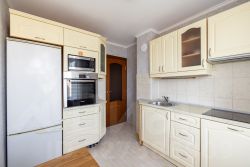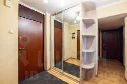 Кухня (8 м2) - кухонный гарнитур с встроенной бытовой техникой (варочная поверхность, духовка, посудомоечная машина, вытяжка), а также холодильник и СВЧ. Просторная гостиная (22 м2) с угловым диваном и креслом-трансформером, книжный стеллаж с закрытыми полками. Спальня (14 м2) с двуспальной кроватью, гардеробом (много-много места для хранения) и выходом на утепленную лоджию. На лоджии оборудовано место для работы. Еще одна спальня для ребенка или подростка (9 м2) с 1,5-спальной кроватью. Эту комнату так же можно использовать как полноценный кабинет. Раздельный сан.узел. В ванной комнате установлена стиральная машина. Большая прихожая (7 м2) с встроенным шкафом-купе.