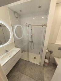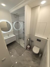 Совмещённый санузел с современной душевой кабиной